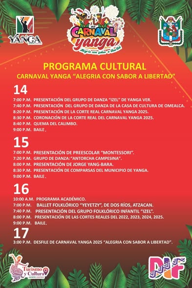 Les compartimos los programas CULTURALES Y ACADéMICOS del CARNAVAL YANGA 2025. Disfrutemos estos días de fiesta en familia y con amigos. ...