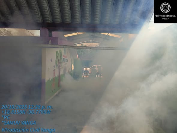Esta mañana la unidad de protección civil municipal realizó labores de fumigación en el jardín de niños ejército mexicano de la comunidad palmillas con el fin de combatir el mosquito ...